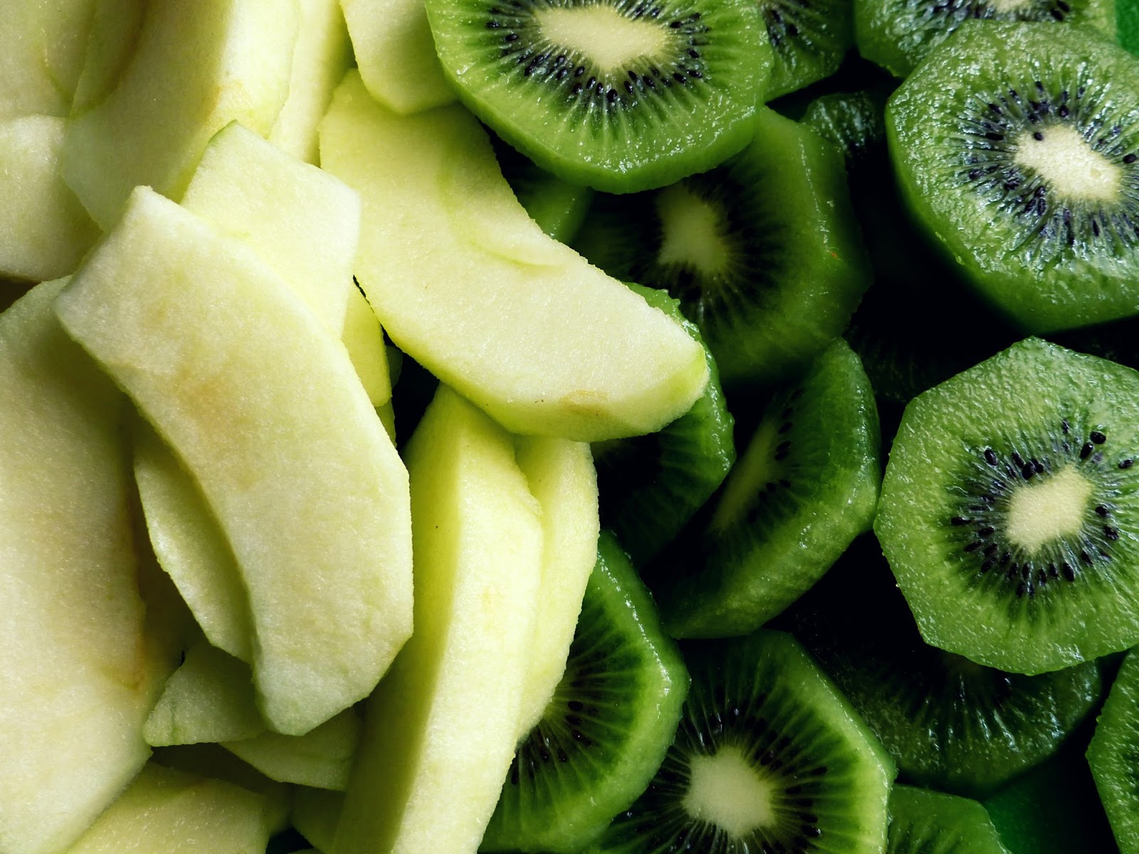 Frullato kiwi e mela verde, con l'aggiunta facoltativa di spinaci.